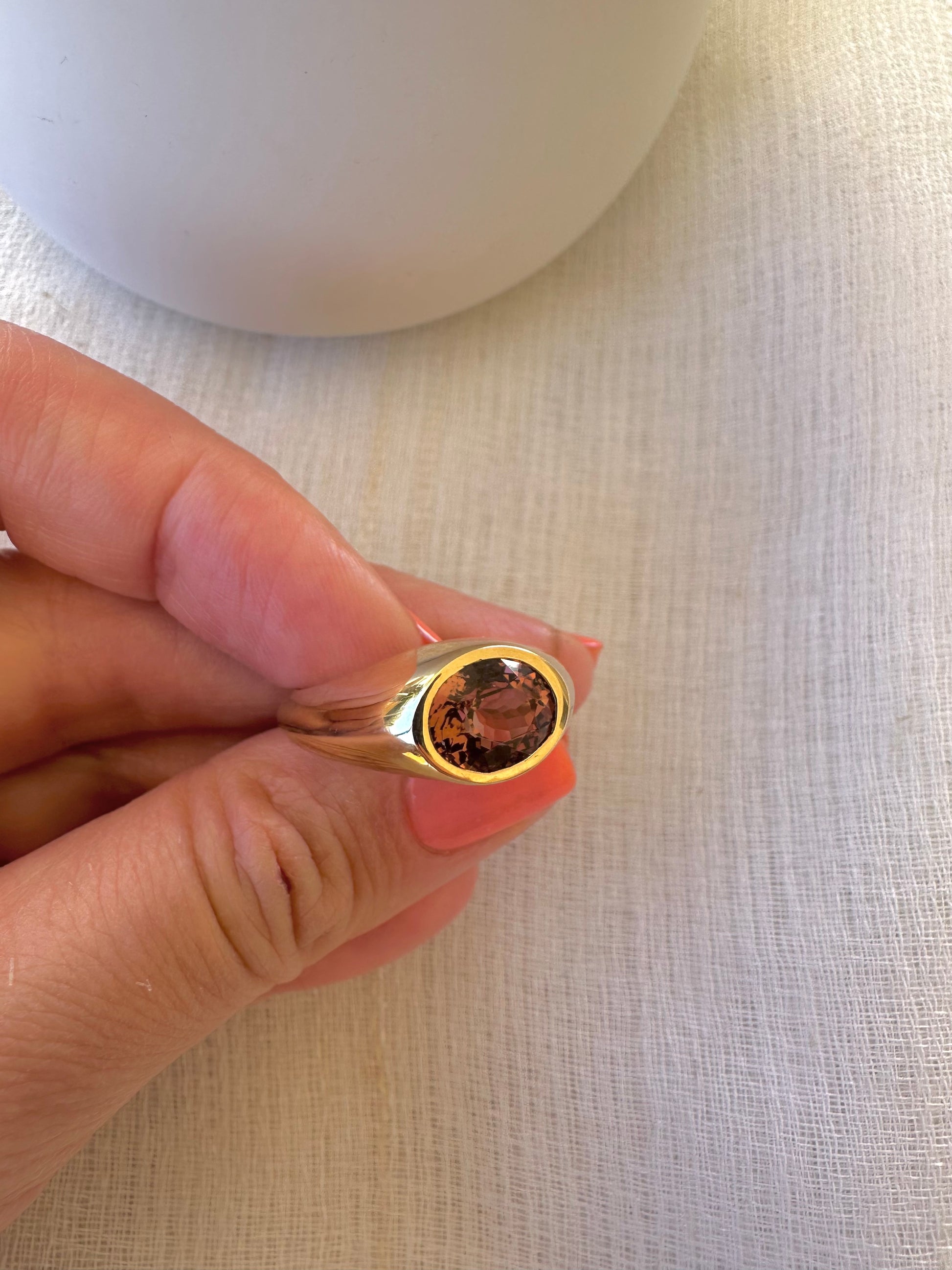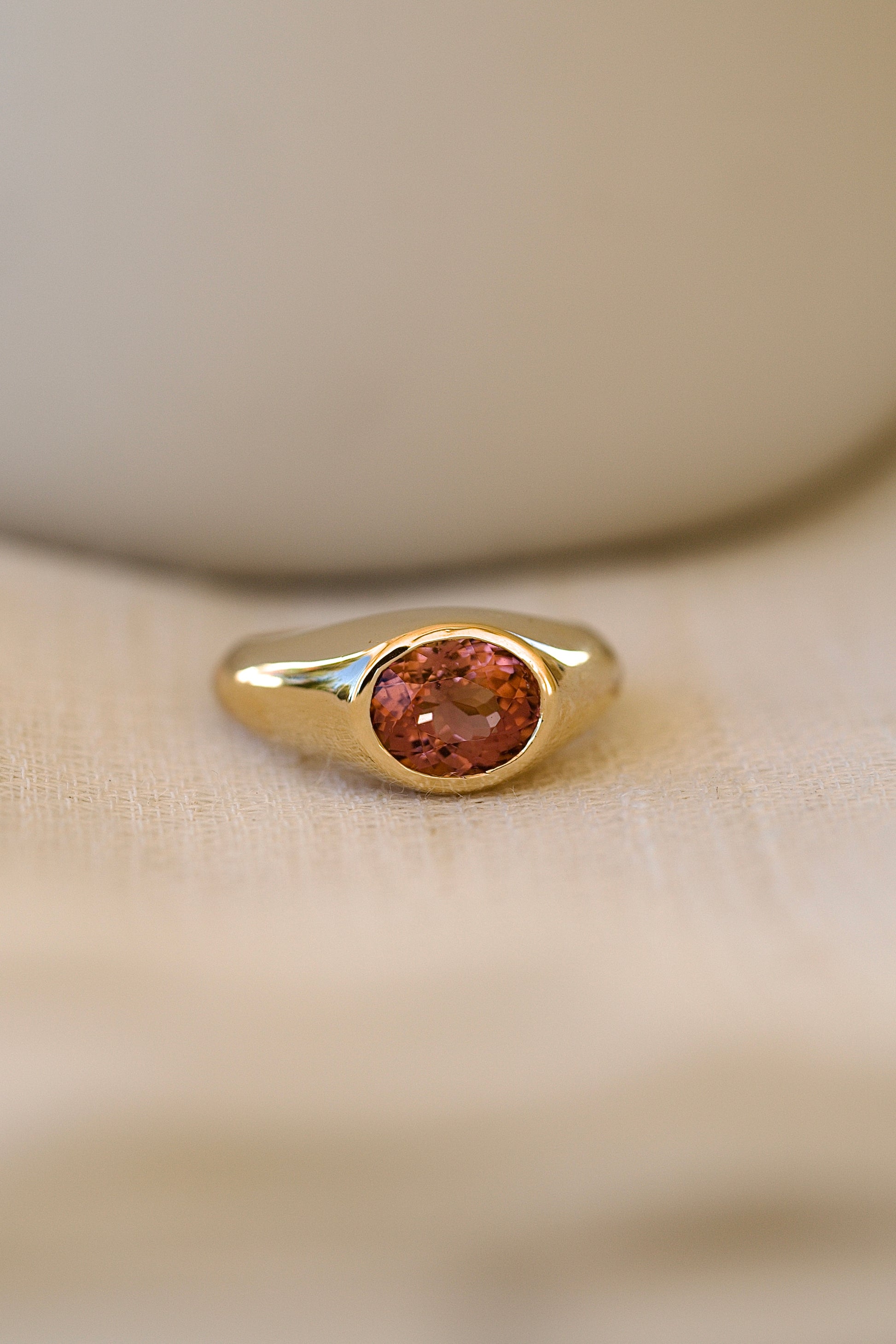 Anillo llamativo de oro de 18k con turmalina rosa