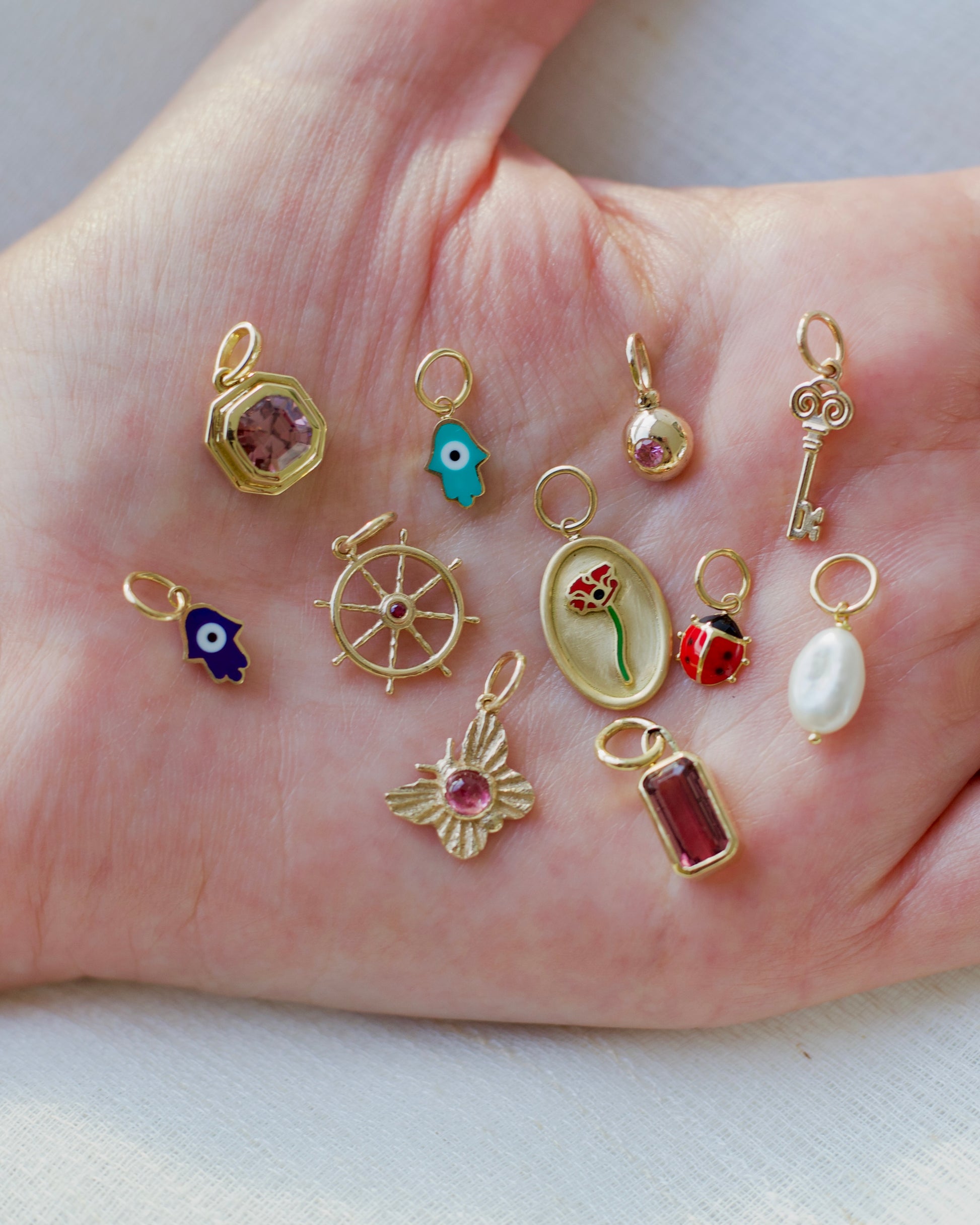 18k Pink tourmaline charm.