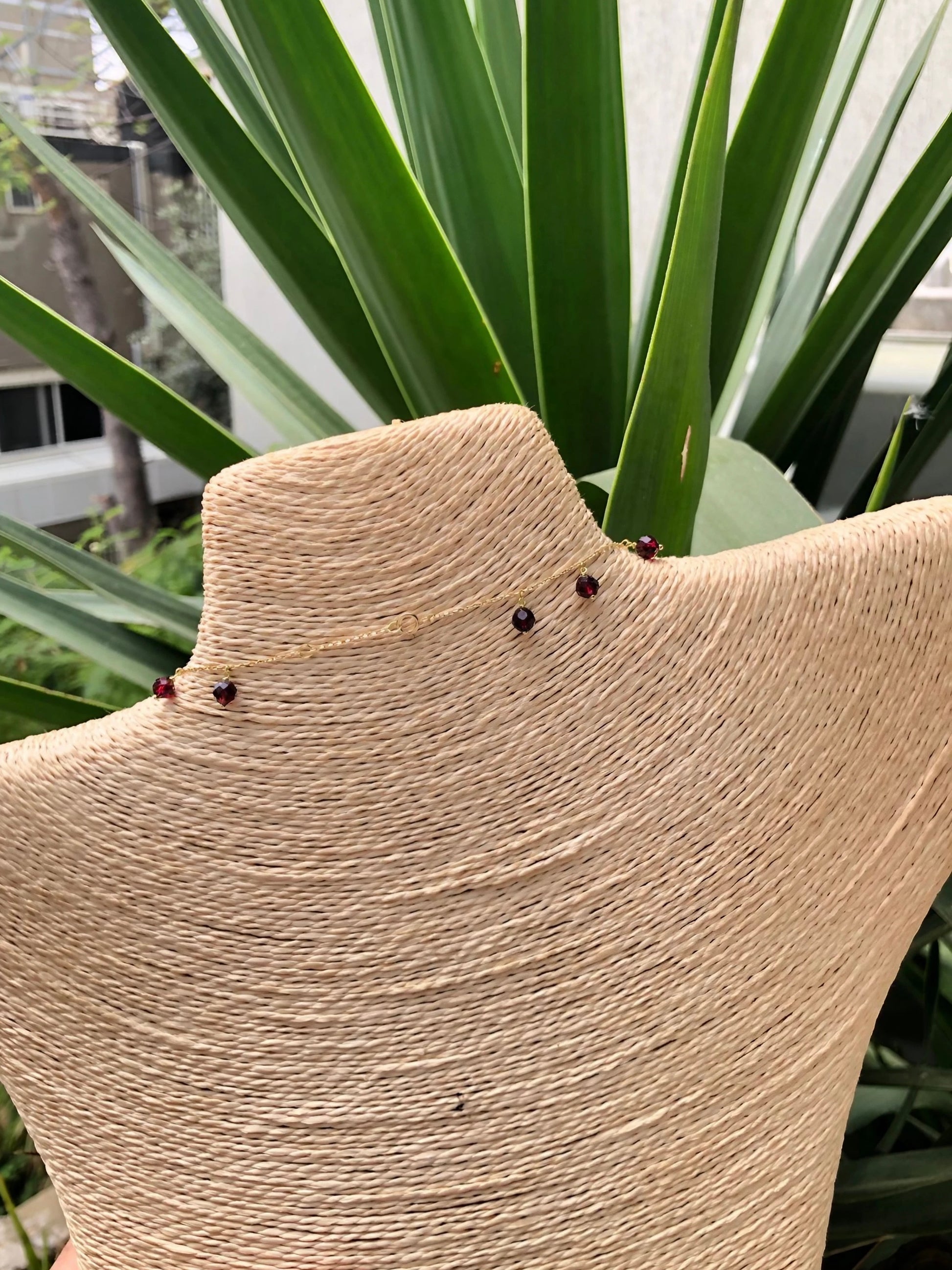 Introducing my elegant Garnet Gold Necklace masterfully crafted from 18 karat gold chain, promising both luxury and resilience. Adorned with eye-catching dangling garnet beads which are delicately hand-wrapped in 18k solid gold wire. This necklace not just a statement piece but also a versatile accessory, perfect for those endless summer adventures and for layering with other necklaces. Its waterproof quality ensures that it remains your constant companion, whether you’re enjoying a seaside escape or a tropical evening out.
